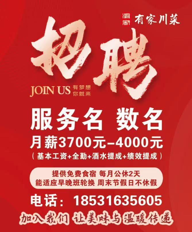 文安【有家川菜】招聘啦!